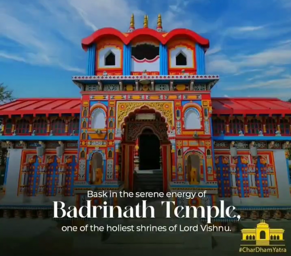 BADRINATH : Shri Badrinath Temple Dedicated to Bhagwab Vishnu. Badrinath is one of the four sites in India's Char Dham pilgrimage and is also part of India's Chota Char Dham pilgrimage circuit. It gets its name from the Badrinath Temple. The Badrinath temple opens every year in the month of AprilMay and closes for winters in November. Thus the temple is shut down for 6 months every year during which prayers to the Badri Vishal continue at the Narsingh Mandir in Joshimath, Badrinath has an average elevation of 3,100 metres 10,170 feet. Badrinath was re- established as a major pilgrimage site by Adi Shankara in the 8th century. In earlier days, According to legend, Adi Shankaracharya discovered a black stone image of Lord Badrinarayan made of Shaligram stone in the Alaknanda River. He originally enshrined it in a cave near the Tapt Kund hot springs. In the sixteenth century, the King of Garhwal moved the murti to the present Temple, the Major Attraction Nearby Badrinath Temple are Mana Village, Byas Gufa, Bhim Pul, Saraswati River, Ganesh Temple, Keshav Pryag the Confluence of Alaknanda and Saraswati Rivers.
